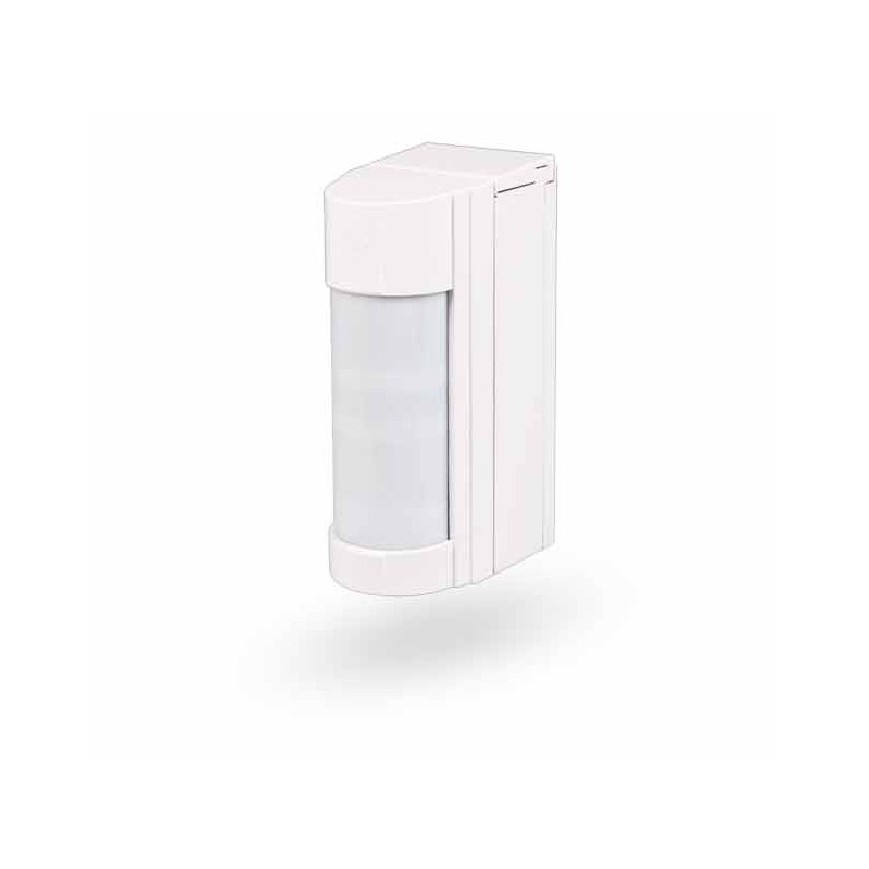 Der optische Teil des Melders enthält zwei PIR-Sensoren. Es handelt sich um eine Zweizonen-Erfassung mit hoher Immunität gegen Fehlalarme und Auslösung durch kleine Tiere. Der Melder hat eine Anti-Masking-Funktion zum Schutz gegen Abdecken seines Sichtfelds. Er ist mit zwei Sabotage-Kontakten (vorne und hinten) ausgestattet, die ein Öffnen oder gewaltsames Entfernen des Melders sofort melden. Der Melder führt regelmäßig einen Autotest durch und meldet dem System seinen aktuellen Status. Er belegt eine Position im System.